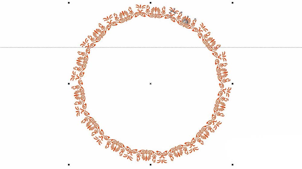 6、我想要的是一个圆形的花边,所以需要将这个图形旋转一周。当然可以定义艺术笔直接变为圆形,但是这跟样品会出现不符合的现象,所以还是手动旋转复制吧。可以将中心点放在圆形的中心部分