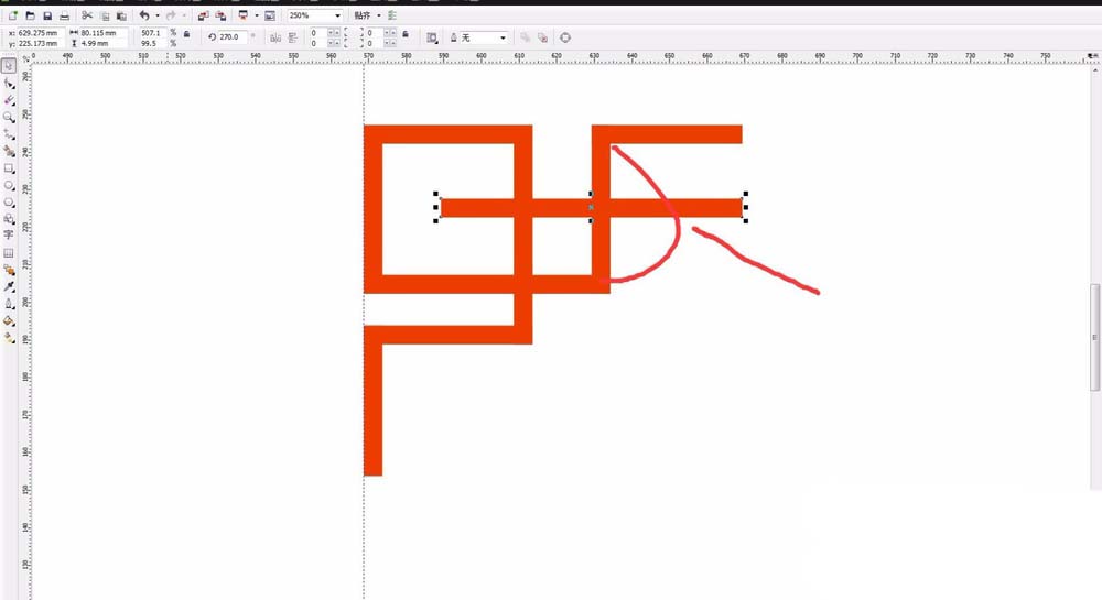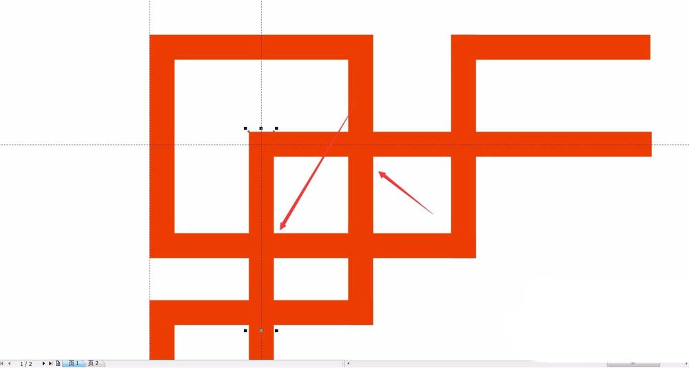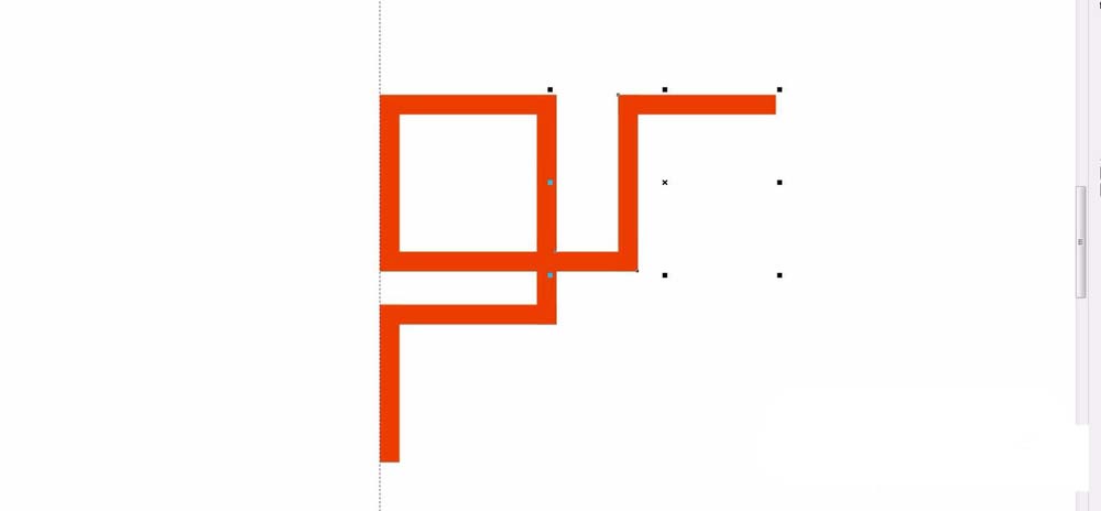 7、再添加两条线,在正方形的中间位置。将右侧和下方的线加长。然后复制一个水平翻转。然后全部选中,垂直翻转。调整边线,让他紧密结合在一起