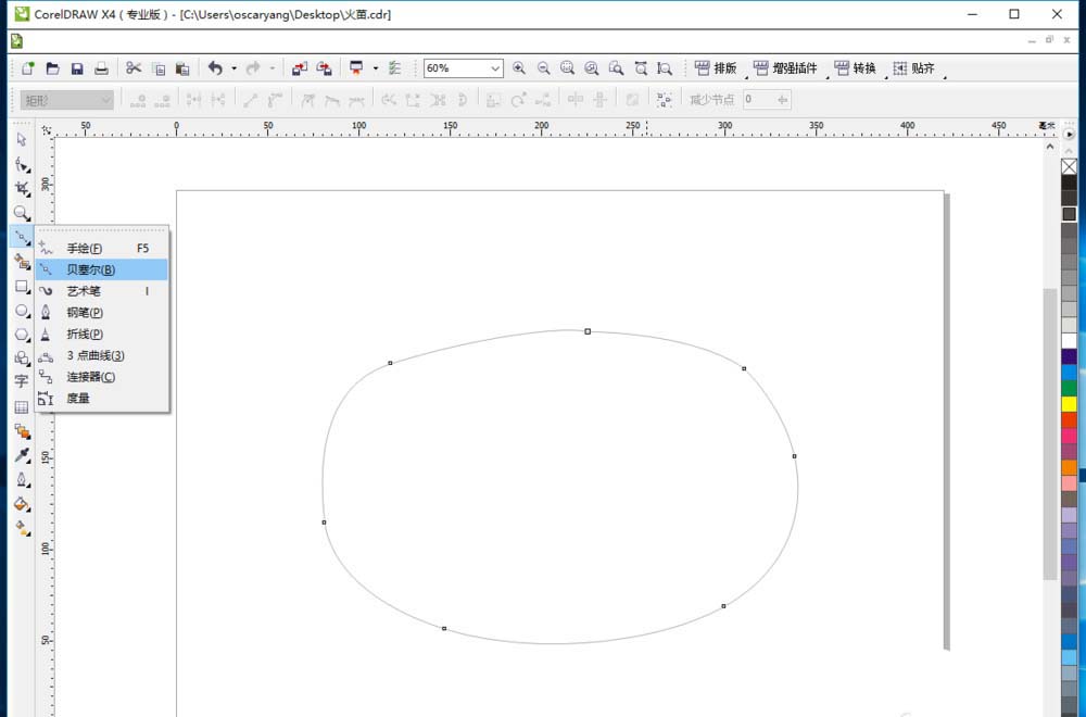 1、先用贝塞尔曲线绘制一个椭圆形。