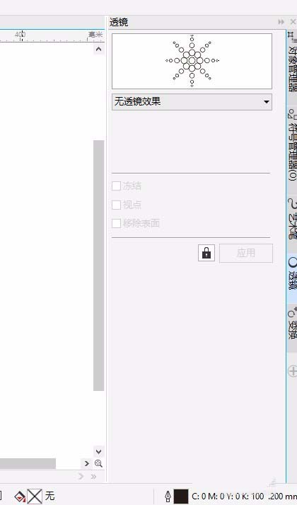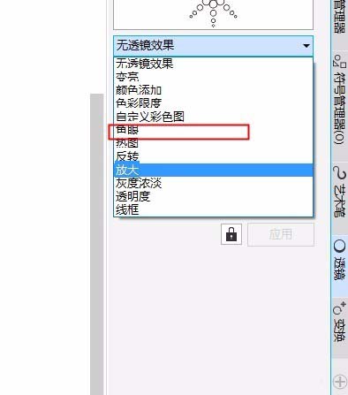4、在透视泊坞窗上选择鱼眼(无透镜效果就是删除鱼眼效果)