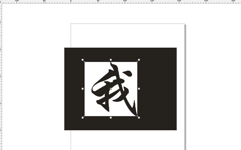 3、绘制一个矩形把扫描的字放在矩形里面(矩形填充为黑色)。