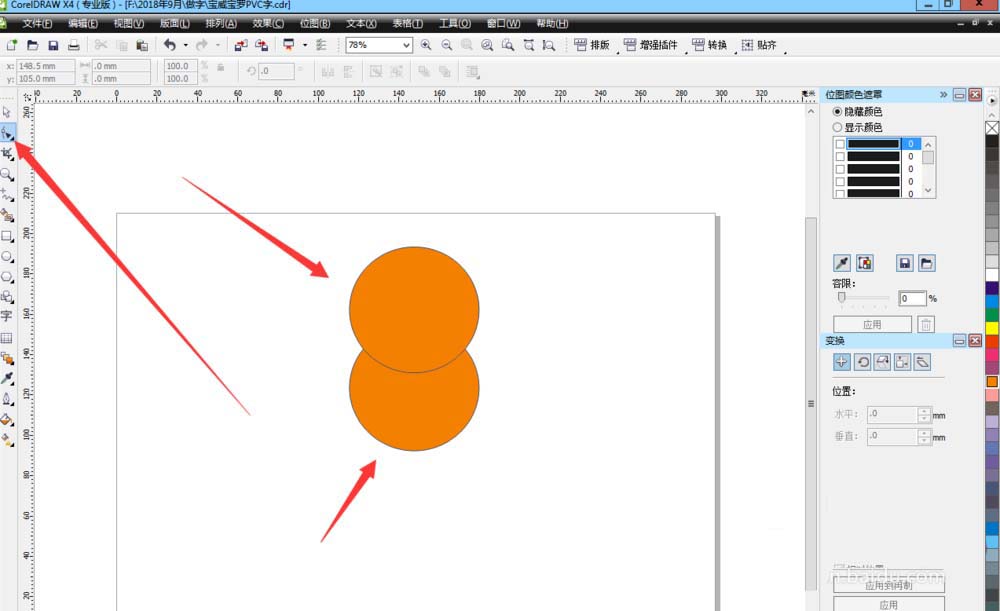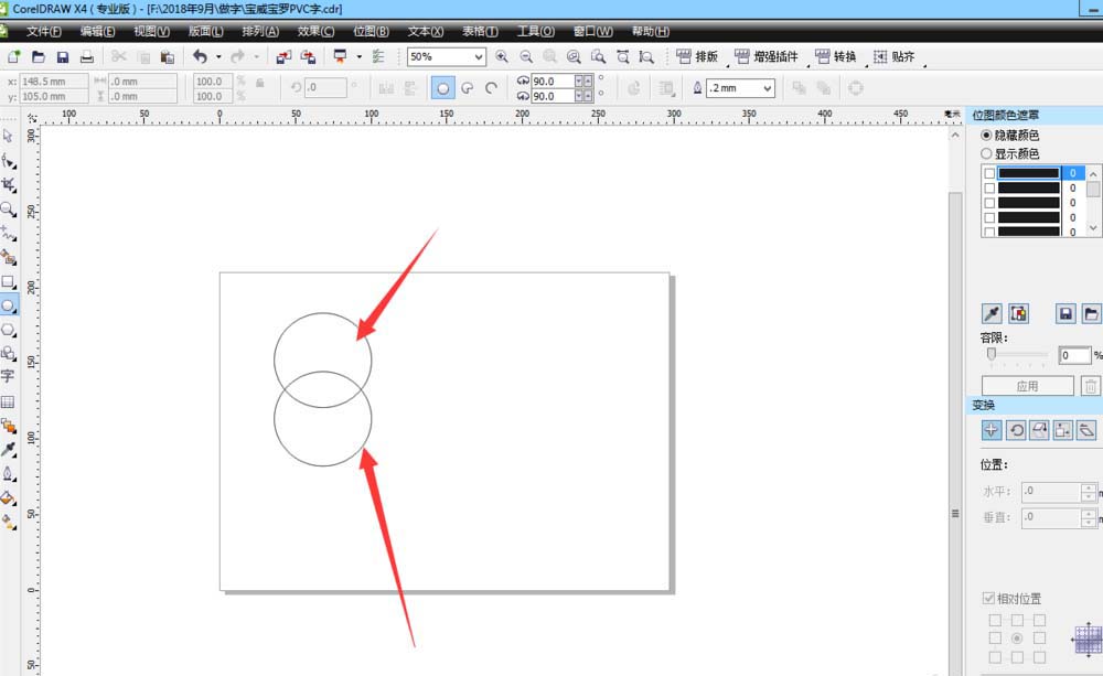 单击椭圆工具绘制两个圆作为实例操作。