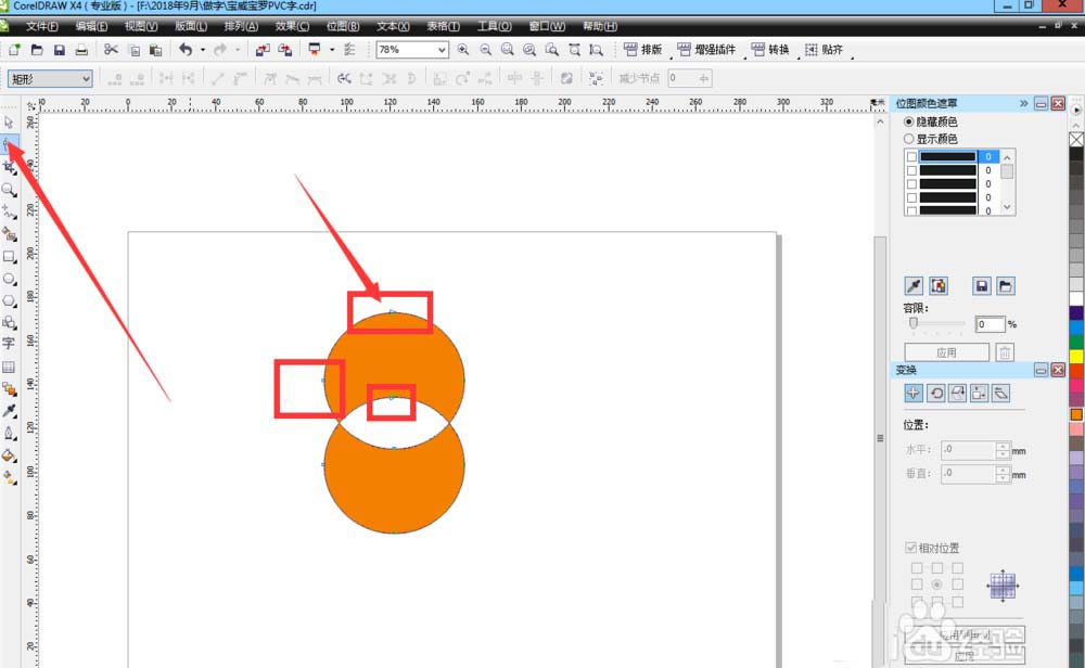 合并:合并是将两个以上的对象合并成一个对象,合并后对象具有单一的填充样式和单一的轮廓样式,可以用形状工具进行调整。如下图: