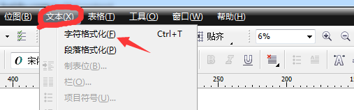 3、在文本选中状态下,菜单栏中选择文本—字符格式化,弹出对话框。