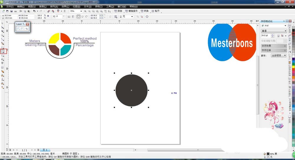 1、椭圆工具按住ctrl画正圆,鼠标左键点击色块填充灰色
