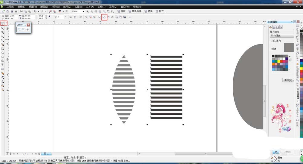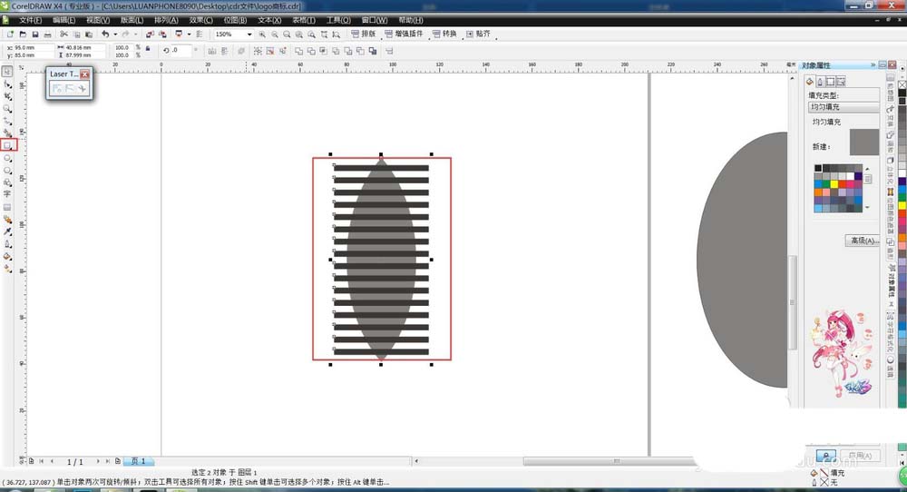 3、选中两个椭圆做相交运算,删去多余图形,得到想要的形状