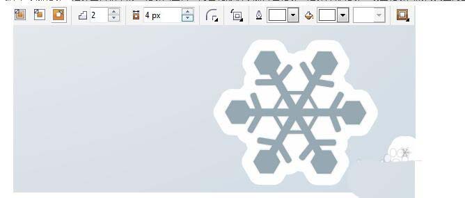 6、添加轮廓,选择工具箱中的“轮廓图工具”为雪花形状添加白色轮廓,选择外部轮廓,设置轮廓图的角类型为圆角。