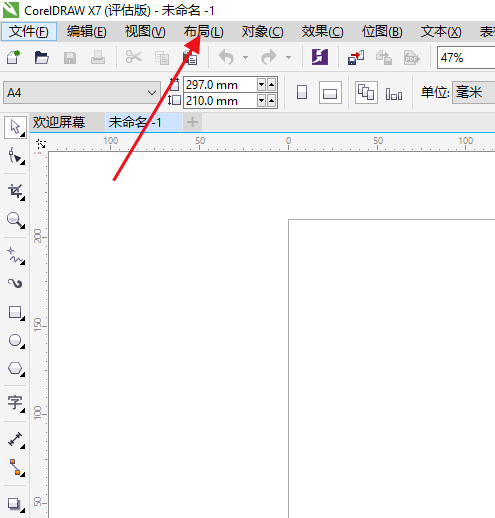 1、在页面菜单栏中,我们找到布局按钮。