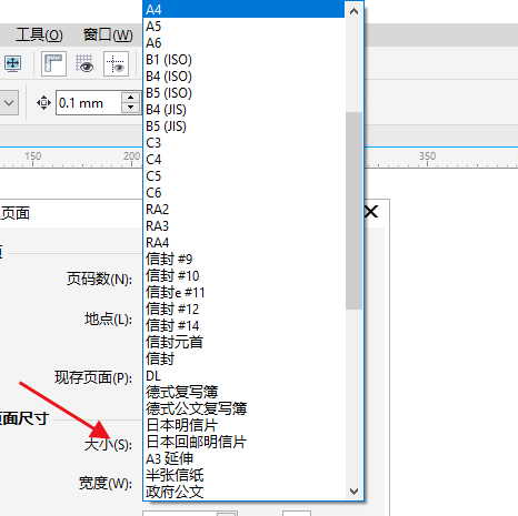 5、我们还可以在这里设置页面的大小。