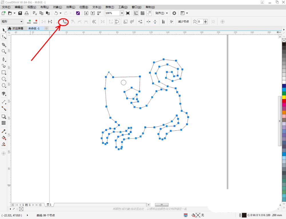 3、选中多边图案,点击【形状工具】,选中图案上的所有点,点击【转换为曲线】将图案转曲后,按图示调整控制点,完成整个生肖虎轮廓图案的绘制(如图所示);