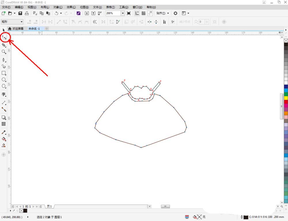 2、首先我们先对巨蟹座身体部分进行绘制。点击【钢笔工具】,使用钢笔线段勾勒出身体部分的轮廓。点击【形状工具】,选中图案上的所有点,同样点击【转换为曲线】将图案转曲后,按图示调整控制点,完成整个身体部分图案的绘制(如图所示);