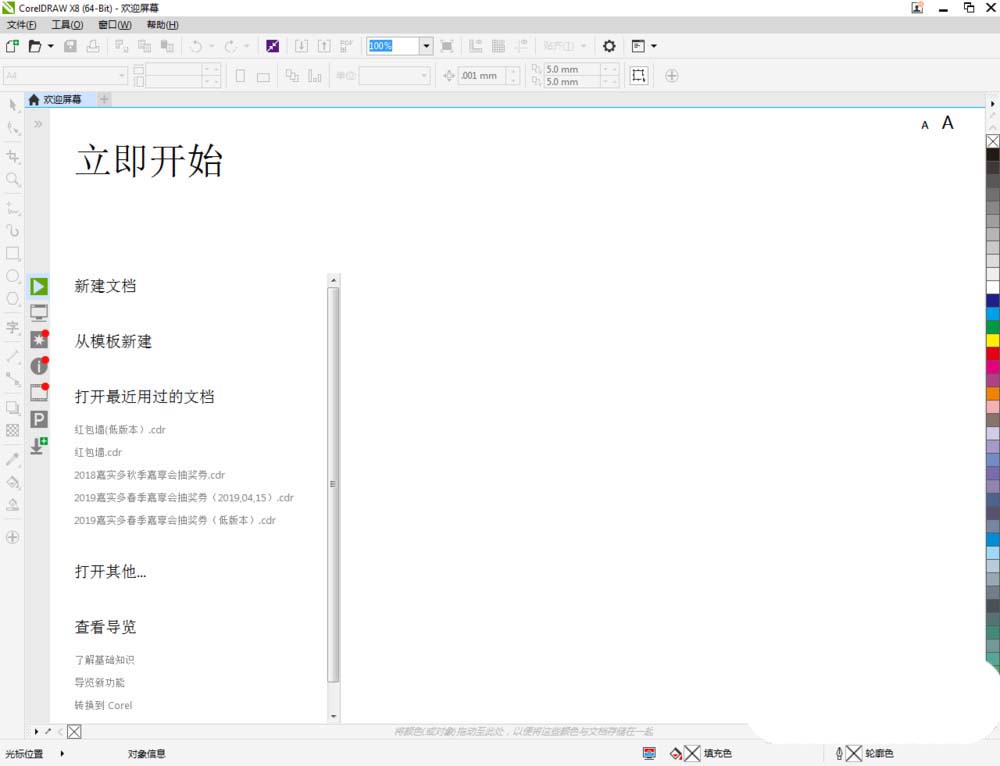 1、打开CorelDRAW X8 软件,点击【新建文档】,按图示参数新建一个cdr文档(如图所示);