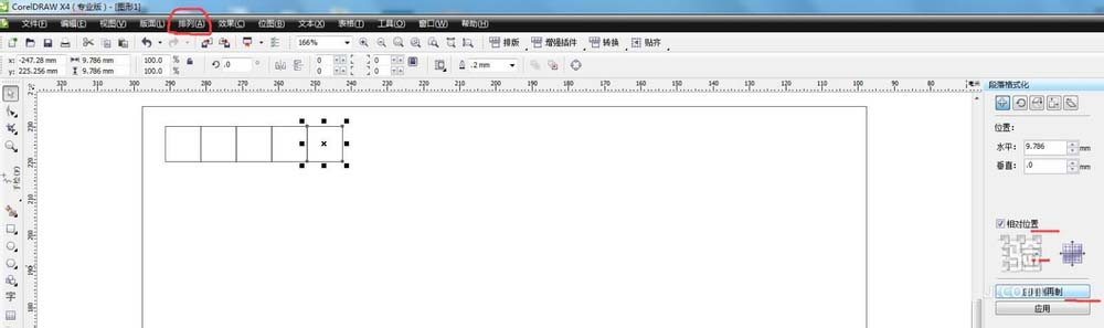 1、打开软件,用矩形工具画框,设置好尺寸。用矩形工具画小框(邮编号码位置),选择小框→排列→变换→位置→勾选右边方块→应用再制。