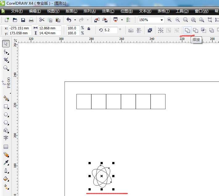 2、画花朵形状。用椭圆工具,画出花瓣的椭圆,选择一个按住鼠标,旋转复制出三个。全选3个椭圆形,点击焊接工具,得到花朵外轮廓。继续椭圆工具画出花蕊,用手绘工具画出花根。手绘工具画出叶子形状,选择叶子,用形状工具调整形状,按住节点摇杆可以调节方向形状。手绘工具画出叶子根茎,完成叶子部分,复制一个摆好叶子位置。