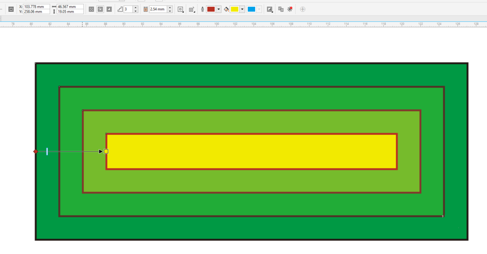 1、打开CDR,在页面绘制一个矩形对象,设置好对象的轮廓图属性效果。如下图所示。