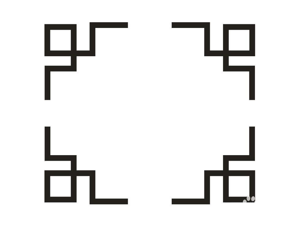 8、复制上部分,然后复制。同样的方法,将另一端的线也绘制完成。群组。向右侧水平翻转一个,向右移动。然后全部选中,垂直翻转一个,向下方移动,得到如下图的效果