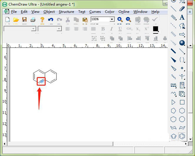 4、出现两个苯环,在点击第一个苯环的边缘,依次反复
