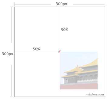 定位的时候,图片被放置在容器的右下角,而并没有跑出容器。(如果使用 background-position: 300px 300px; 的话,背景图片会被移出容器)