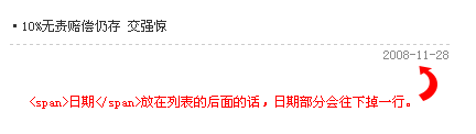 我们通常的做法是,把日期写在span标签里,然后把span标签写在li里,css定义span(float:right),让span浮动在列表的右边。