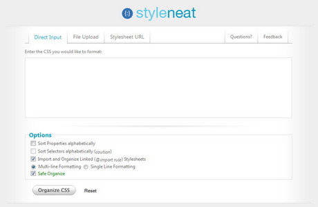『Styleneat』CSS 文件结构格式重新组织服务,可以将书写风格凌乱的 CSS 文件按照层叠式结构重新组建,方便您进行阅读和研究,十分实用的一个在线工具。