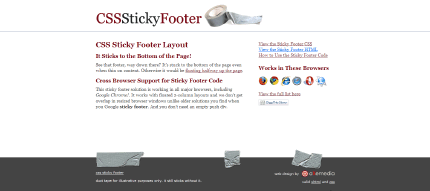 网络上之前比较知名的footer布局有 Ryan Faits 创造的,不过它的方法在HTML代码中会有一个空的div层。严格来说,是不符合语义网代码标准的。