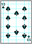 我们以黑桃10为例看看其中的坐标点,下图是在PS中用辅助线做好的效果:
