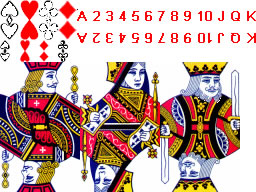 知道了原理就好办了,我们先做出它们的图片来,一张一张来,黑桃、红心、梅花、方块大图各一张,小图各一张,J,Q,K图案各一张,背景图一张。