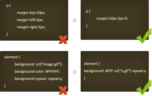 CSS简写可使开发工作变得更加容易,并让你的CSS保持简洁、更小而且更易用。这里是一些示例: