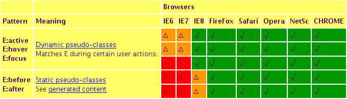 橙色/ Δ 表示浏览器部分支持当前CSS选择器。