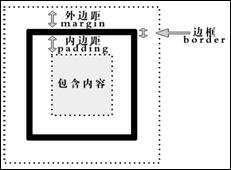 大多数XHTML元素的结构都类似于图11.18所示,除了包含的内容(文本或图片)外,还有内边距、边框和外边距一层层的包裹。读者在布局网页和定位XHTML元素时要充分地考虑到这些要素,才可以更自如地摆弄这些盒子。