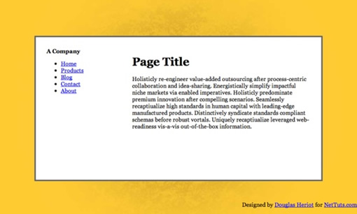 以语义化标签开始是很好的。下面是我们的页面构成: