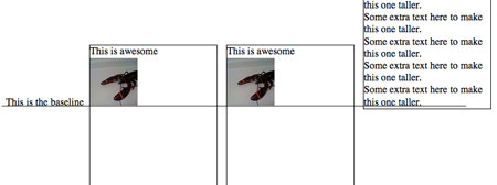 就如所看到的,每个基线都是和文本 ‘This is the baseline.’ 的基线对齐的。文本虽然不在 <li> 内部,但是文本节点的父元素 <ul> 就指出了父元素的基线所在。