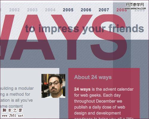 阴影效果曾让 Web 设计师既爱又恨,现在,有了 CSS3,你不再需要 Photoshop,已经有网站在使用这个功能了,如 24 Ways website.