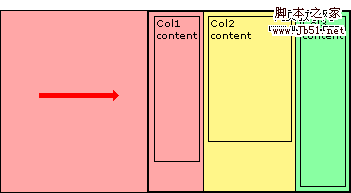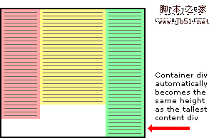 这是本文多列等高方法的核心。 使一个 div 的高度等于最高列高度的唯一方法是这个 div 包含所有的列。换句话说,通过把所有的列放在一个容器中,容器的高度就是最高列的高度。这是个非常有用的结构。