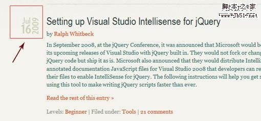 LearningjQuery.com 博客帖子列表的左边有一个很酷的日期,如图: