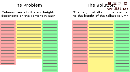 利用纯CSS创建一个等高多列的布局并不件易事,本教程将着重分析出现在多列布局的多个问题,然后为大家等来一个简单全游览器通吃的解决方法,不使用图片,脚本,CSS hacks并在最严格的XHTML 规范中都能通过验证。