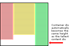 这是解决多列等高的关键。使一个DIV的高度等于最高列的高度的唯一方法就是让这个DIV包含所有的列。换句话说,通过把所有的列放在一个容器中,容器的高度就是最高列的高度。这是个非常有用的结构。