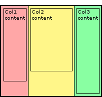 如上图所示,由于各列的内容不一致导致其背景的高度也不统一。而背景实质上是内容(标准的盒子模型是由内容区