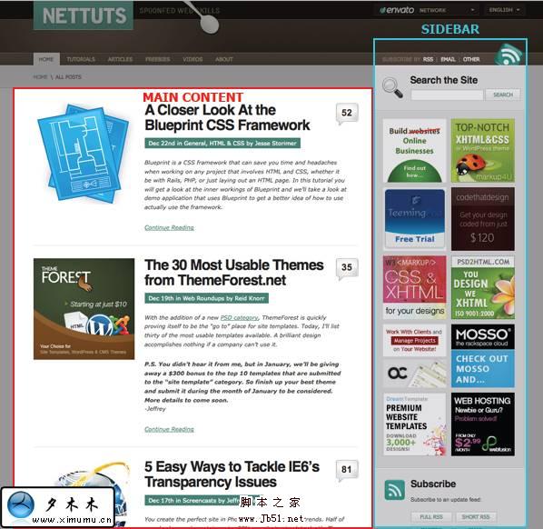 正如你看到的,NetTuts很好的遵循了黄金比率。顶端三分之一的网页再次分成了三分,非常接近黄金比率。难怪NetTuts的设计是如此吸引人!