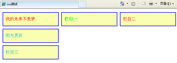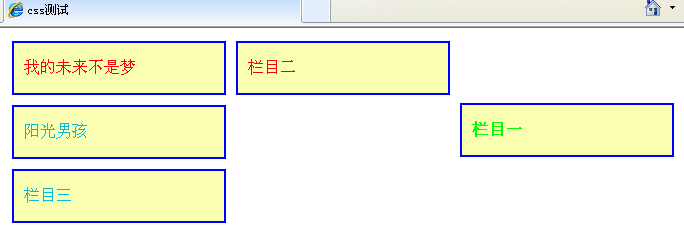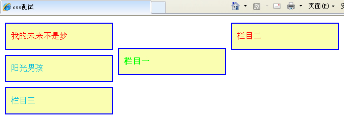 定位:下面对栏目一进行相对定位,偏移量为top:50px;(即相对于原来的位置进行偏移)