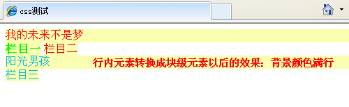 通过CSS的设置把行内元素转换成块级元素: