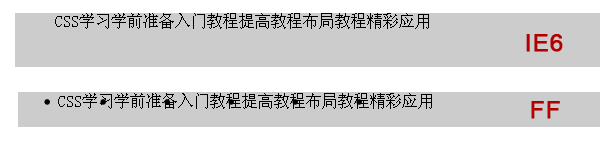 效果作出来了没有,下面是在IE6和FF中显示效果(其他浏览器效果大家自己测试,总结规律):