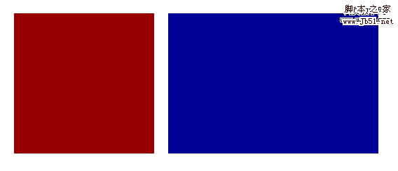 还记得第二课我们做的例子的效果么?最后效果是,红色方块和蓝色方块都处于一行,我们使用“Float:left”,打击了块状元素的“霸道”即块状元素不允许其他元素和它处于同一行。我们将红色方块的CSS代码中加入了“Float:left;”后,红色方块终于允许蓝色方块和它处于同一行。如图: