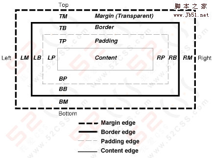 W3C定义的平面盒模式如下: