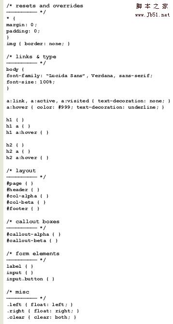 每次当你制作完一个样式表时,你可以去除那些不通用的东西,然后把文件保存为一个CSS模板以备以后之用。