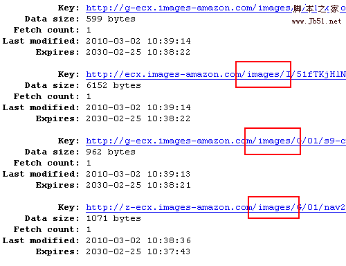 Firefox 缓存显示的浏览器缓存的来自 amazon.com 的图片(在 Firefox 地址栏输入 “about:cache” 来查看)。