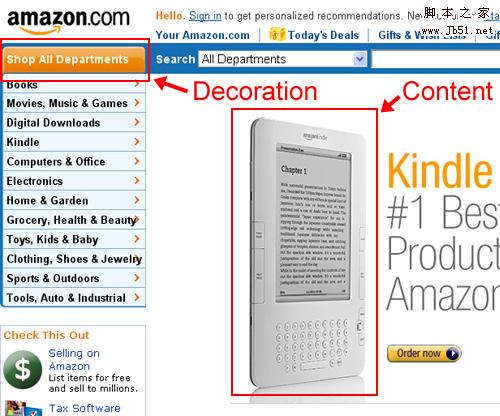 Amazon 正确是使用了内联图像元素和装饰用的背景。