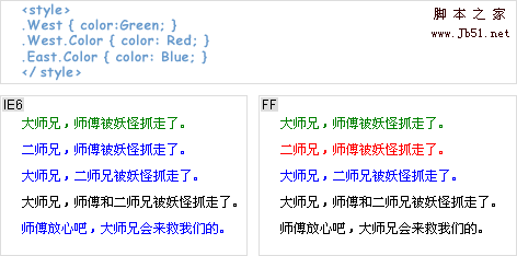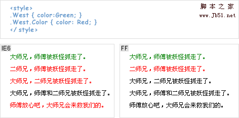 解析结果,原来在IE6中显示为蓝色的都显示为红色。而FF保持不变。