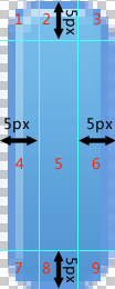 2、4、6、8作为四个边的背景,如果不想改变原有按钮设计质感,只能2、8横向拉伸;