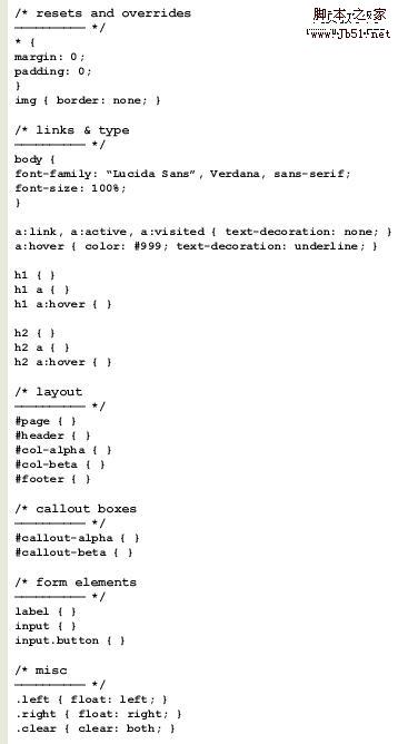 一旦你选定了用一个结构,剥掉所有不通用的并把文件存成一个CSS模板,以便将来使用。